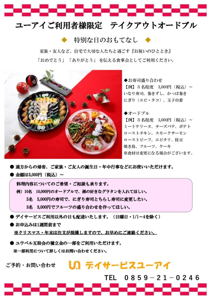 日々の利用者との相談のなかで、「ユーアイの料理はおいしいから、年中行事や大切な人のお祝いなどで