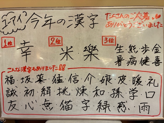 世相を表す漢字、ご利用者様の心情を表す漢字もありました。